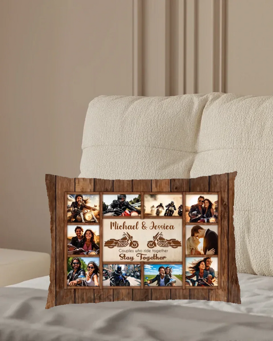 Motorcycle Name Sign, Personalized Couple Photo Collage Pillow - Gift for Biker Couple 747794-B