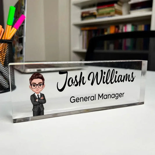 Daisy Flowers Woman Man Office Personalized Acrylic Desk Name Plate, Office Desk Decor, Gift For Colleagues, Coworkers, Boss, Nurses, Doctors, Healthcare Workers, Police, Firefighters 692392