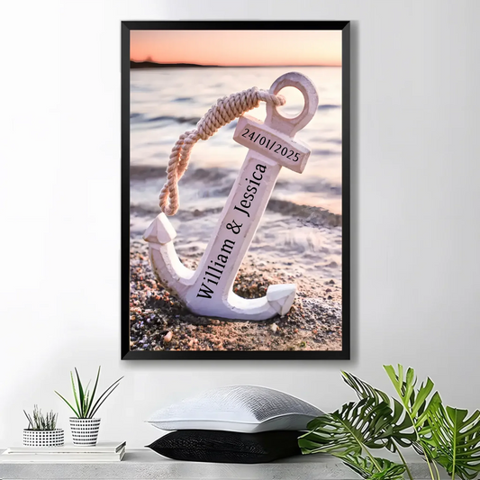 Personalized Canvas “Shared anchor” - Name and date customization - Gift for couples 768473