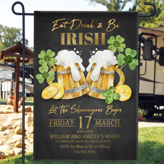 Eat Drink & Be Irish Invitation Template Printable Adult St. Patricks Day Party Invite Editable Shamrock Green Beer 769479-769486