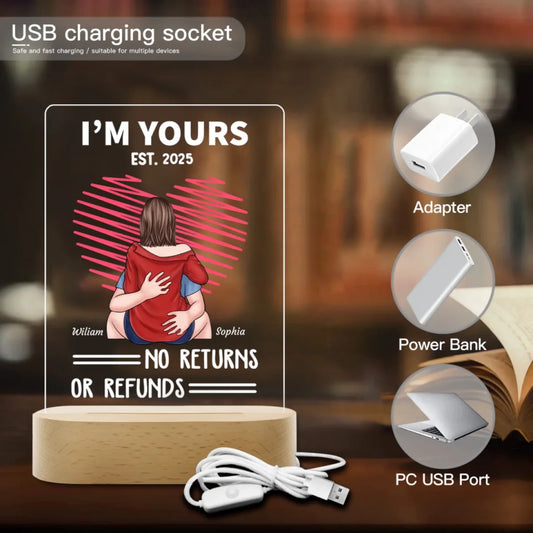 Personalized I Am Yours No Returns Or Refunds LED Night Light with Wood Base Valentine's Day Gift for Couple 789350