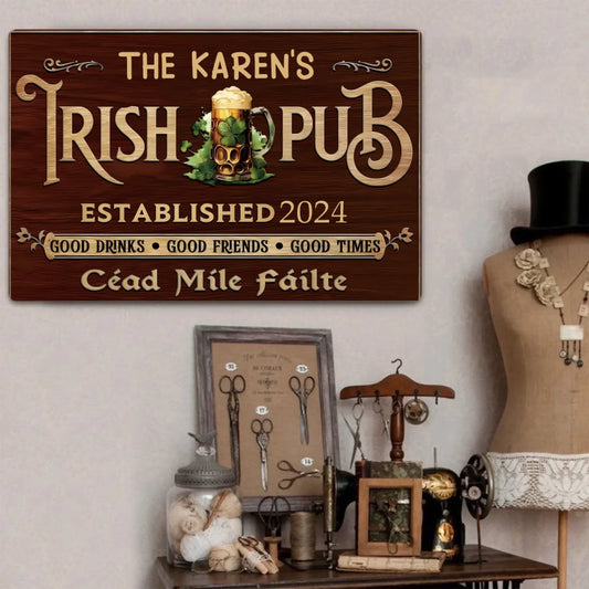 Céad Míle Fáilte, Irish Pub Good Drinks Good Friends Good Times - Personalized Metal Sign 789118-789382