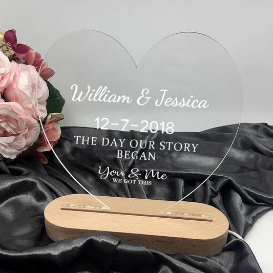 Custom name and date - Luminous acrylic table - Birthday gift for couples 759240