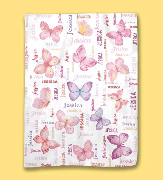 Personalized Watercolor Butterflies Anti Pilling Fleece Blanket with Names Colorful Home Decoration Birthday Gift for Her 728813