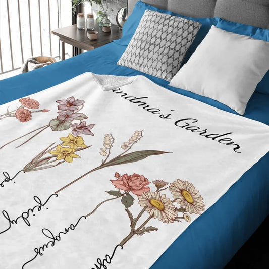 Personalized Grandma's Garden Soft Throw Blanket with Birth Flowers Bouquet and Names Home Decor Birthday Gift for Women 730832