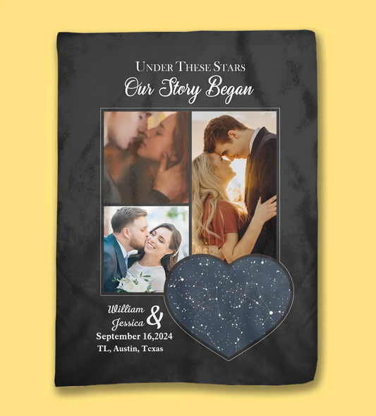 Under These Stars, Our Story Began Custom Night Sky, Photo And Text Blanket 733402-M