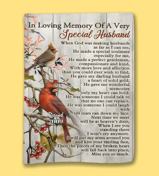 Eternal Love - 'In Memory of a Special Husband' Cardinal Birds Personalized Heaven Blanket 742513-M