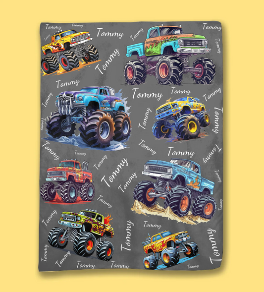 Personalized Custom Name Monster Trucks Blankets Blanket for Kids 731520