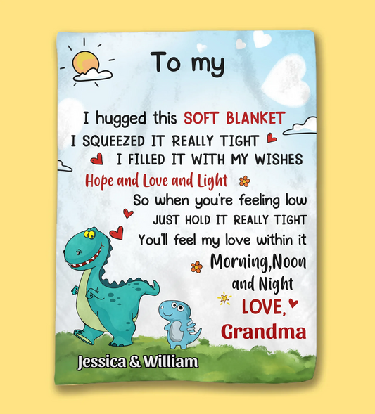 Personalized Mom Grandma Granddaughter Grandson Dinosaur Blanket 730820