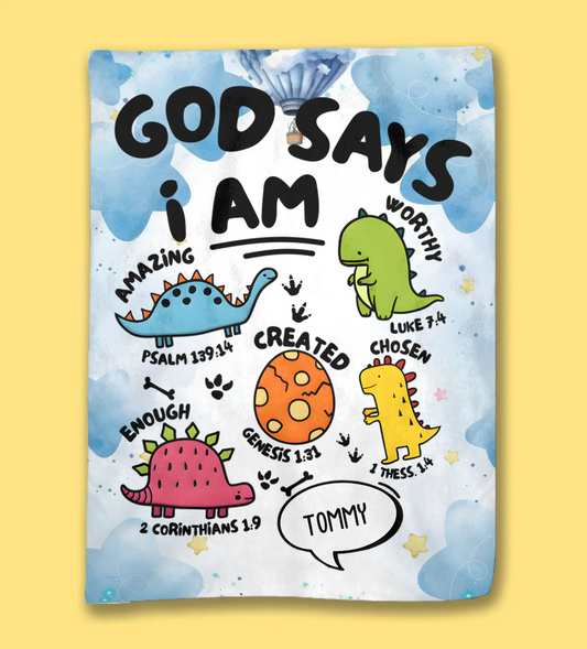 Personalized Construction Vehicle Dinosaur Animal God Says I Am Soft Throw Blanket with Bible Verse Home Decor Birthday Christening Gift for Kids 728787