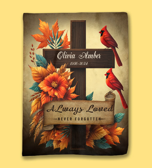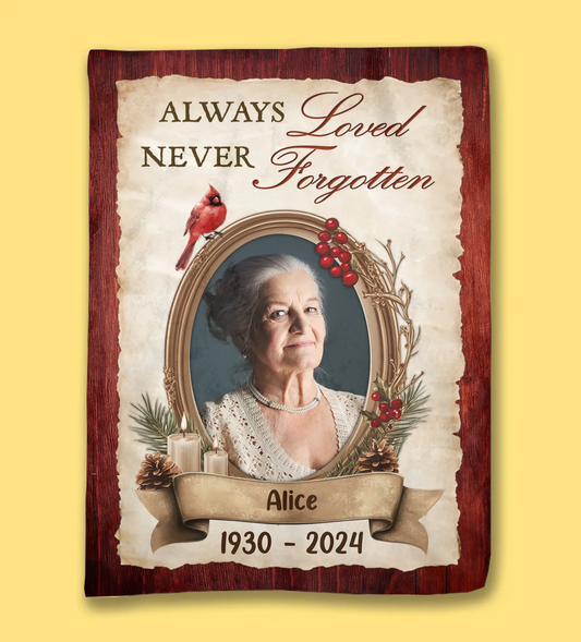 Christmas Memorial Gifts Sympathy Cardinal Always Loved Never Forgotten Personalized Blanket 726124