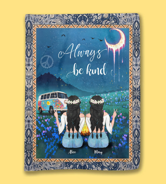 Boho Hippie Bohemian - Best Friends Make The Good Times Better And The Hard Times Easier - Fleece Blanket - Personalized Blanket 723793