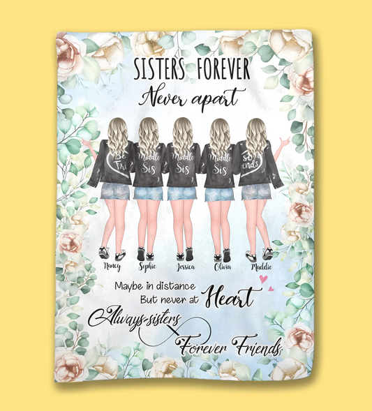 5 Sisters - Sisters forever, never apart. Maybe in distance but never at heart Ver1 - Fleece Blanket - Personalized Blanket 721973
