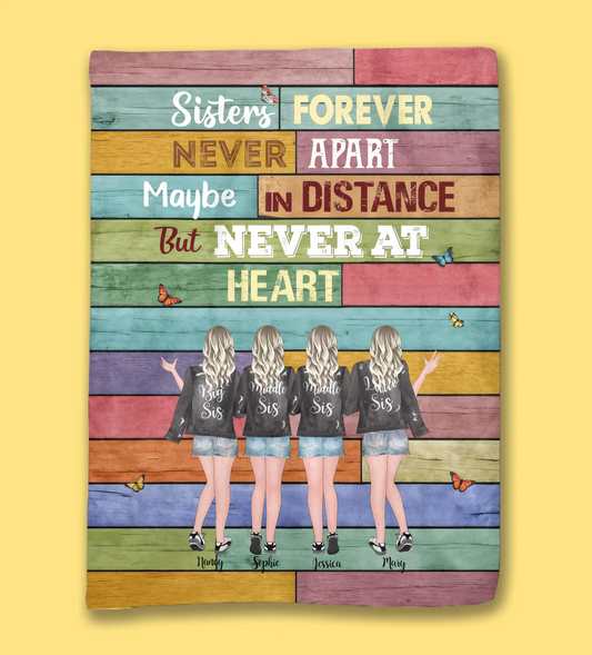 Up to 4 Girls - Sisters forever, never apart. Maybe in distance but never at heart (Vintage) - Blanket - Personalized Blanket 722081