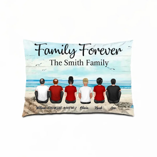 Retro Vintage Family Sitting Beach Landscape Personalized Horizontal Pillow 714266