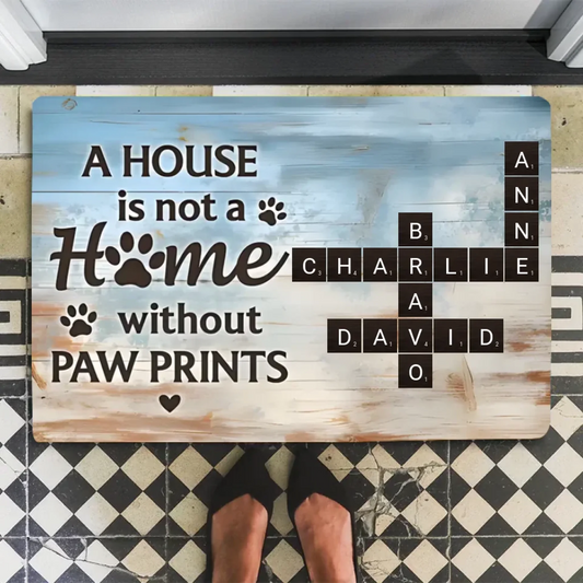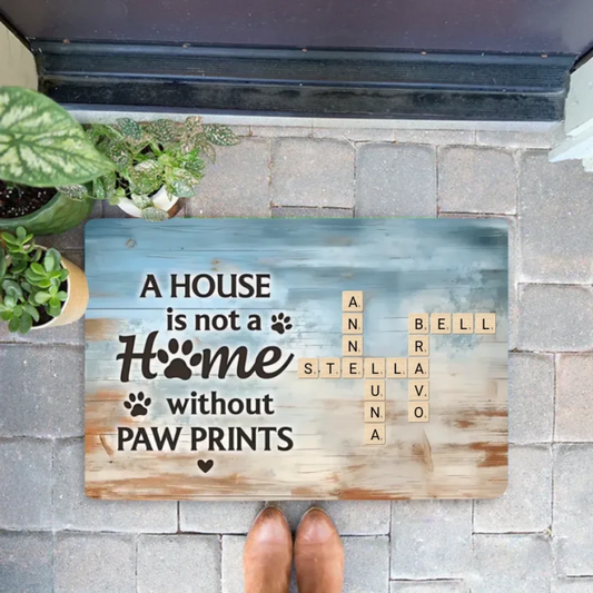 Home With Paw Prints Pet Crossword Puzzle Art Personalized Mat 713391-D