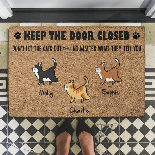 Keep Door Closed Cats Planning Escape - Personalized Doormat 694625