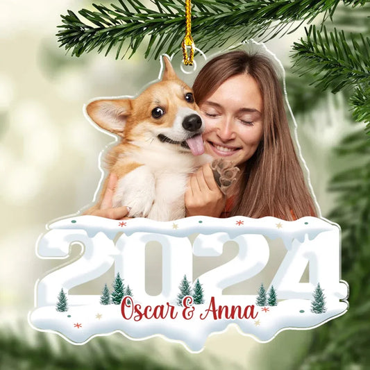 Custom Photo Pet & Human - Joy of Christmas 2024 - Personalized Custom Acrylic Ornament 693094
