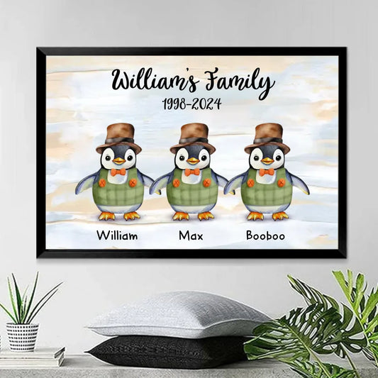 Penguin Family Names Personalized Print – Custom Family Canvas Art – Christmas Family Sign – Gifts For The Family Christmas – Penguin Family Gift 731594-731637