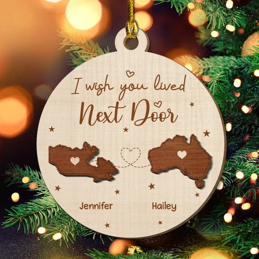 I Wish We Lived Close International - Personalized Custom Freeshape 2-Layered Wood Ornament 693296