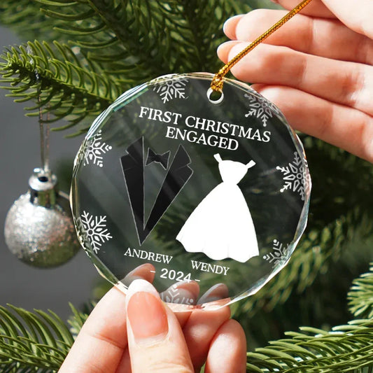 First Christmas As Married Couples - Personalized Heart&Circle Shaped Glass Ornament 723945