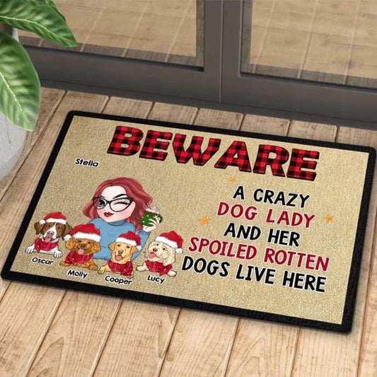 Beware A Crazy Dog Lady - Personalized Custom Doormat 700455
