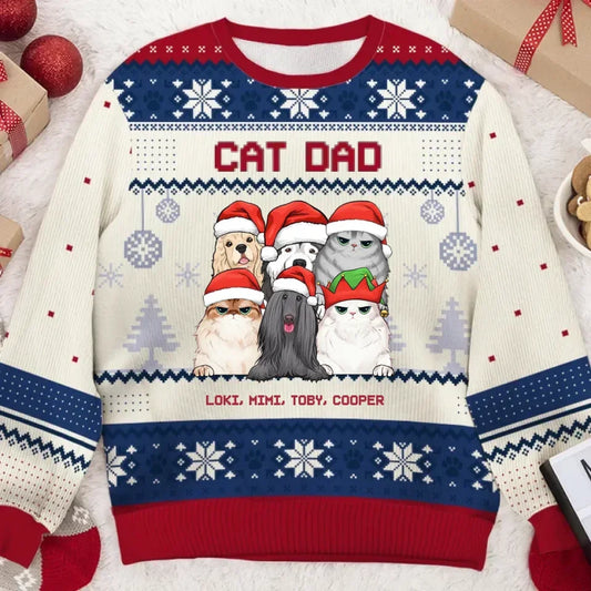 Merry Christmas, Cat Mom Cat Dad -Personalized Custom UnisexUgly Christmas Sweatshirt, Wool Sweatshirt, All-Over-PrintSweatshirt -Gift For Cat Lovers, Pet Lovers, Christmas Gift 677412