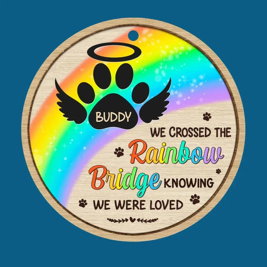 Custom Photo Journeying To The Rainbow Bridge, Leaving Love In Every Step - Memorial Personalized Custom Circle Glass Ornament - Christmas Gift, Sympathy Gift For Pet Owners, Pet Lovers 685968