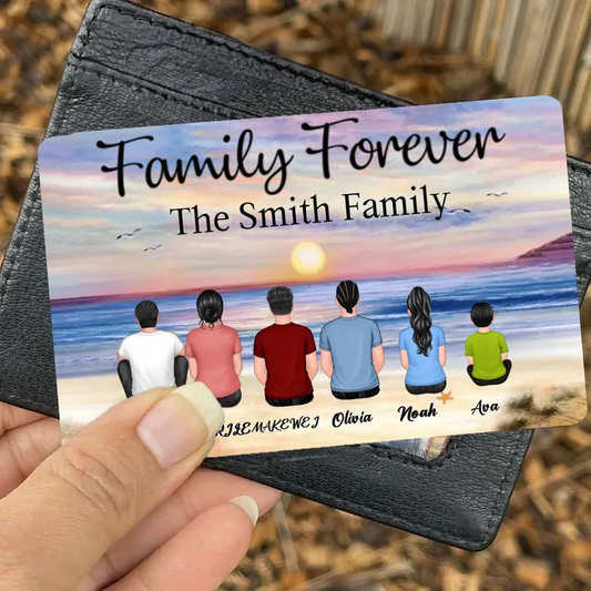 Retro Vintage Family Sitting Beach Landscape Personalized Horizontal Personalized Wallet Card 701169