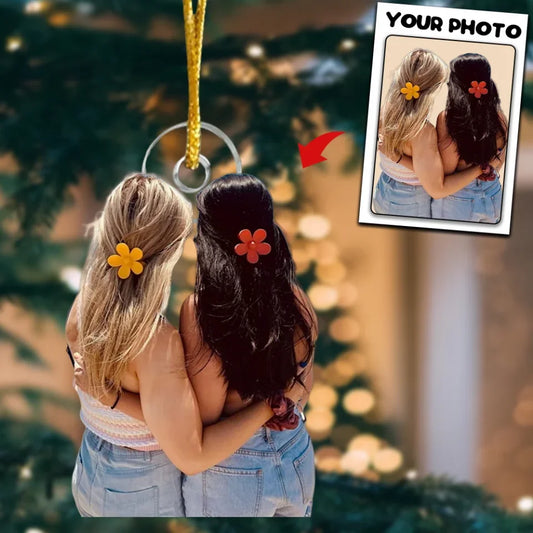 Sister Custom Photo Pugs And Kisses On This Christmas - Sister Personalized Custom Ornament - Acrylic Custom Shaped - Christmas Gift For Sister 683455