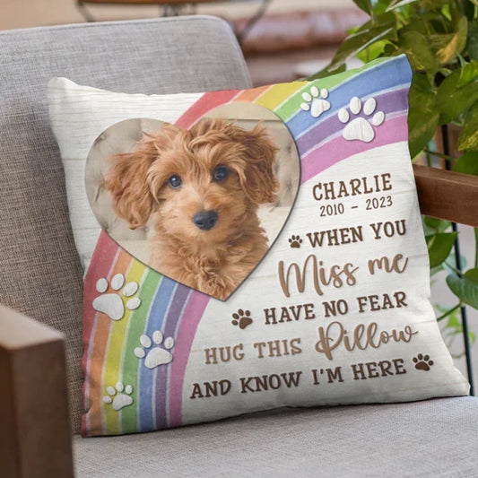 Custom Photo When You Miss Me Hug This Pillow - Memorial Personalized Custom Pillow - Sympathy Gift, Gift For Pet Owners, Pet Lovers 699110