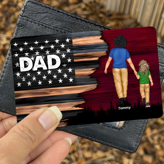 Dad Grandpa Papa Walking With Kids Half Nation Flag Personalized Horizontal Wallet Card , Gift For Dad, For Grandpa, For Husband 708346 - Q
