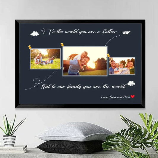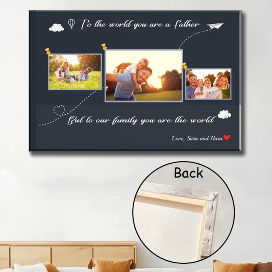 Dad Is The World Custom Photo - Customizable Navy Vintage Canvas 733563-733564