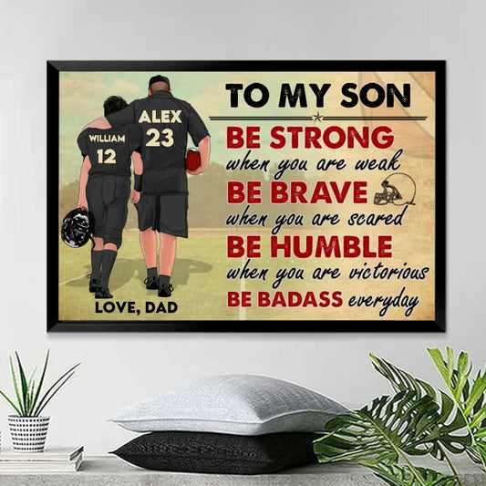 Be Strong, Be Brave, Be Humble, Be Badass Football Poster, Canvas with custom Name, Number & Appearance, , Gifts For American Football Players, Sport Gifts For Son 726877-726939