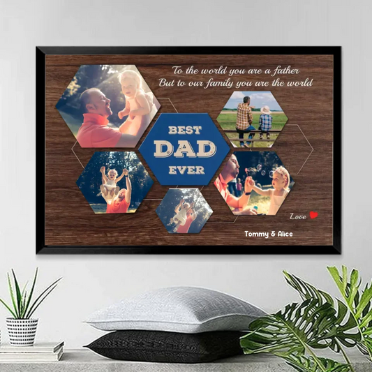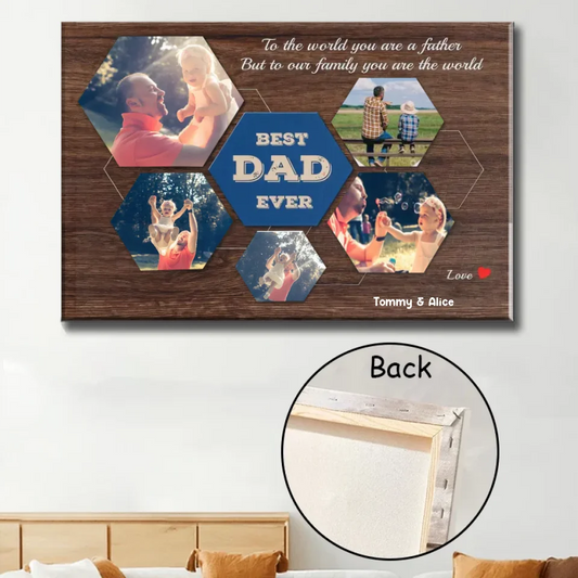 Best Dad Ever Custom Photo Collage - Customizable Dark Wood Style Background Canvas 733404 - 734551