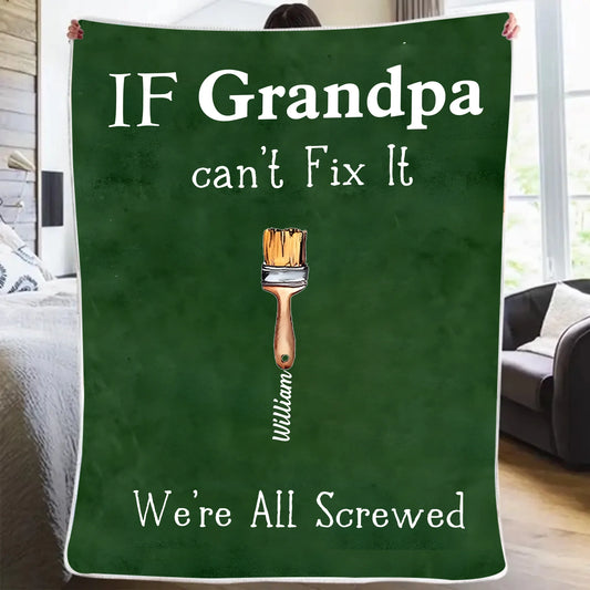 Personalized If Grandpa Dad Can’t Fix It Repair Tools Blanket with 1-12 Kid's Name Father's Day Birthday Gift for Dad Grandpa 732441