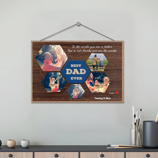 Best Dad Ever Custom Photo Collage-Customizable Dark Wood StyleBackground Wooden Plaque 733404