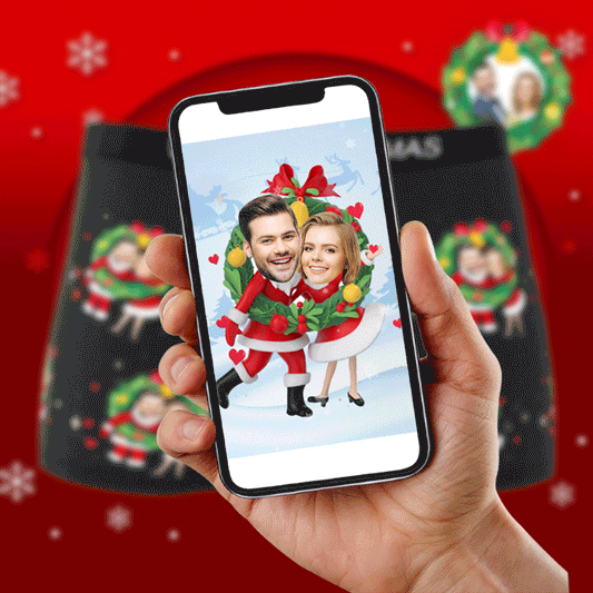 Custom Photo Boxer Face Underwear Double Santa Claus Couple Gifts Christmas Gift AR View