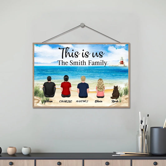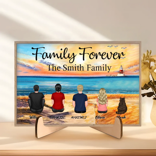 Retro Vintage Family Sitting Beach Landscape Personalized Horizontal Custom Wooden Plaque 701169