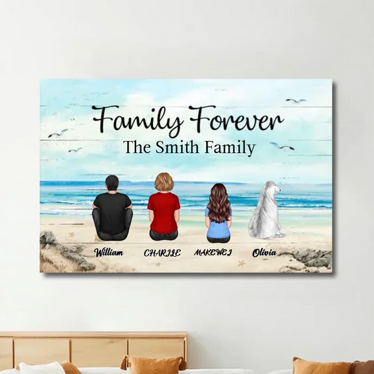Retro Vintage Family Sitting Beach Landscape Personalized Horizontal Poster or Canvas2 701169-709199