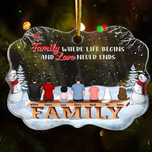 Family Where Begins And Love Never Ends - Memorial Gift - Christmas Gift - Personalized Custom Medallion Acrylic Ornament 689119