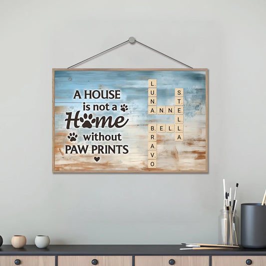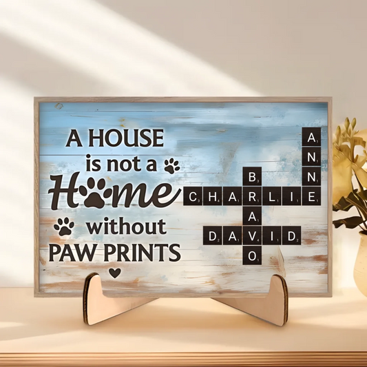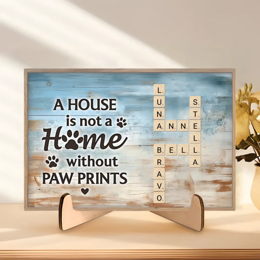 Home With Paw Prints Pet Crossword Puzzle Art Personalized Custom Wooden Plaquet 713391
