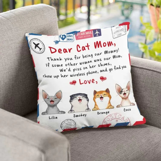 Dear Cat Mom - Thank You For Being Our Mommy - Personalized Camping Pillow 698973