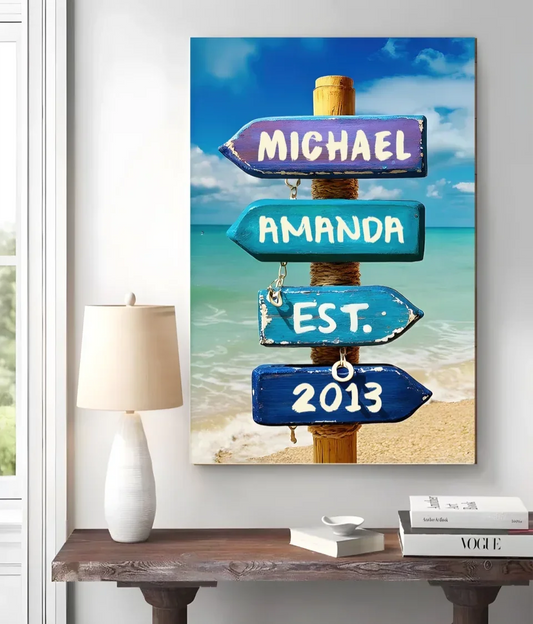 Love You To The Beach And Back - Couple Personalized Custom Vertical Canvas - Gift For Husband Wife, Anniversary 709973-711105
