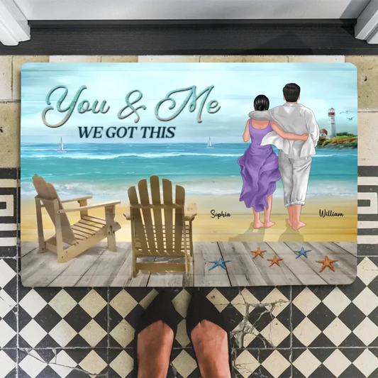 You & Me We Got This Back View Couple Walking On The Beach Personalized Horizontal Doormat 708035-D