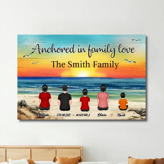 Retro Vintage Family Sitting Beach Landscape Personalized Horizontal Poster or Canvas2 701169-709199