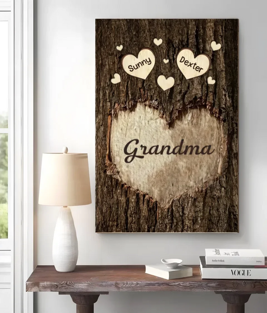 Personalized Mom Dad Grandma Grandpa Heart on Trunk Canvas 723885-724017