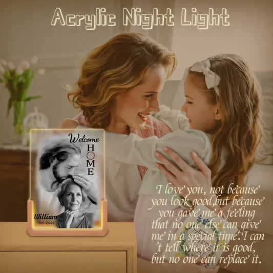 Personalized Photo Memorial Welcome Home, Safe In Arms Of Jesus Sympathy Gift Loss Loved One Frame Light Box 764233