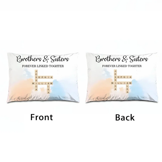 Brothers & Sisters Forever Linked Together Crossword Puzzle Art Personalized Pillow Gift For Brothers, Sisters, Siblings, Family 714498-B