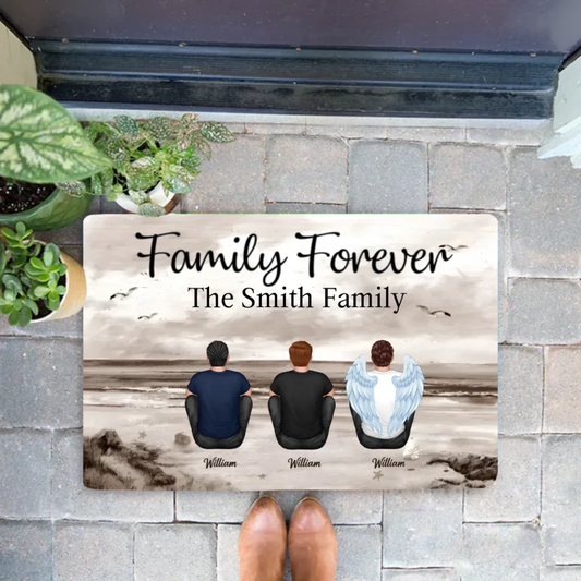 Retro Vintage Family Sitting Beach Landscape Personalized Horizontal Doormat 701216-D